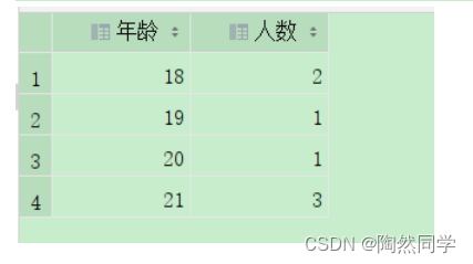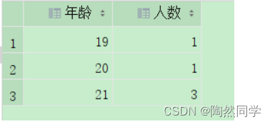 -- 统计表中每种年龄各有多少人 结果显示年龄和对应人数