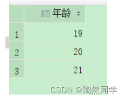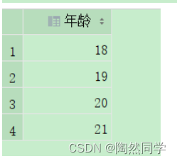 -- 统计表中大于18岁的年龄有哪几种。 结果显示年龄