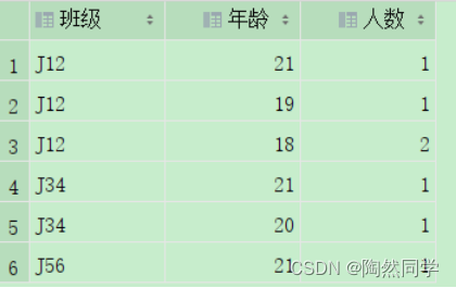 -- 需求5: 统计出 各个班级中存在的年龄,以及该年龄对应的人数 结果用班级名字排序