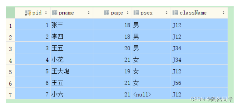 INSERT INTO person VALUES (NULL,"小六",21,null,'J12');