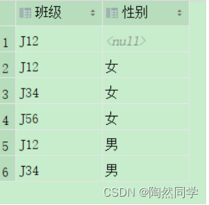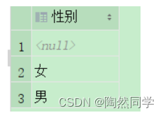 -- 统计 表中 有哪几种性别。 结果显示性别值