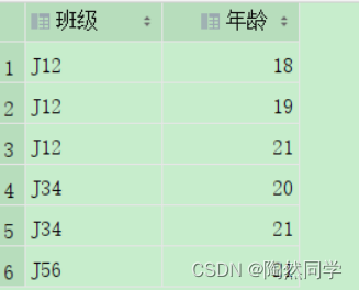 -- 需求3: 各个班级中存在的年龄 显示班级和年龄