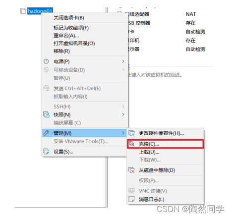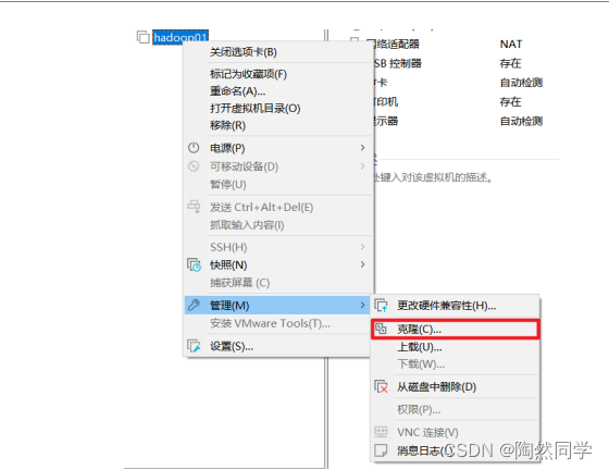 - 利用hadoop01,克隆三台虚拟机:hadoop02 hadoop03