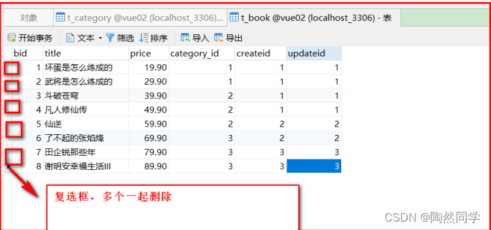 INSERT INTO `t_book` VALUES (4, '凡人修仙传', 49.90, 2, 1, 1);