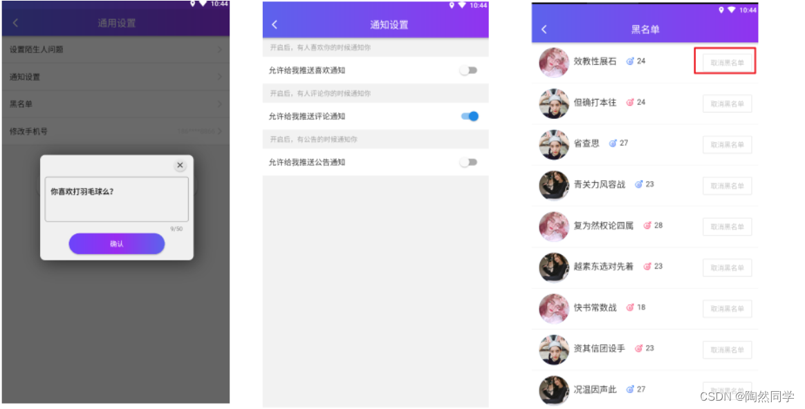 黑名单:对于不感兴趣的用户设置黑名单屏蔽骚扰