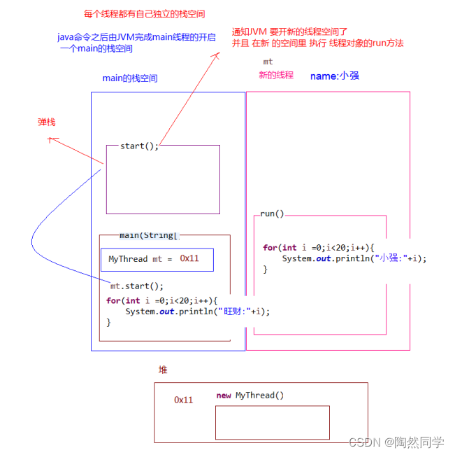 多线程执行时,到底在内存中是如何运行的呢?以上个程序为例,进行图解说明: