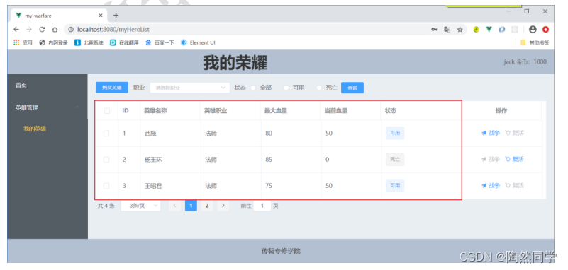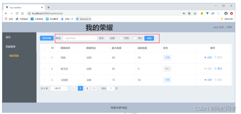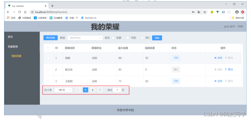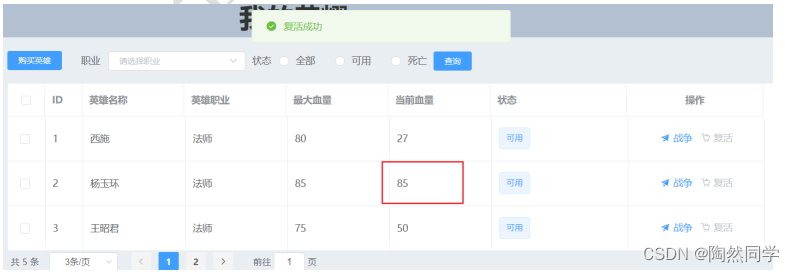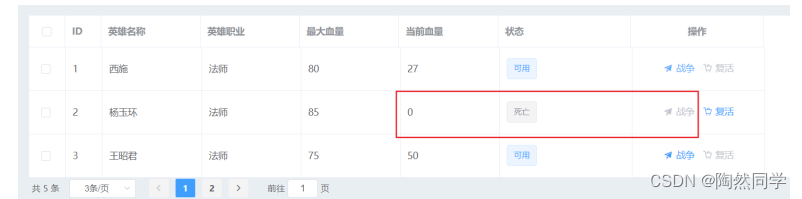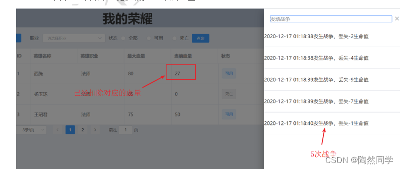 - 如果血量为0,当前英雄死亡,且不能再次发送战争。