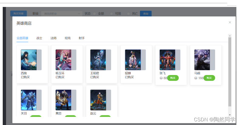 - 一个英雄,一个用户只能购买一次