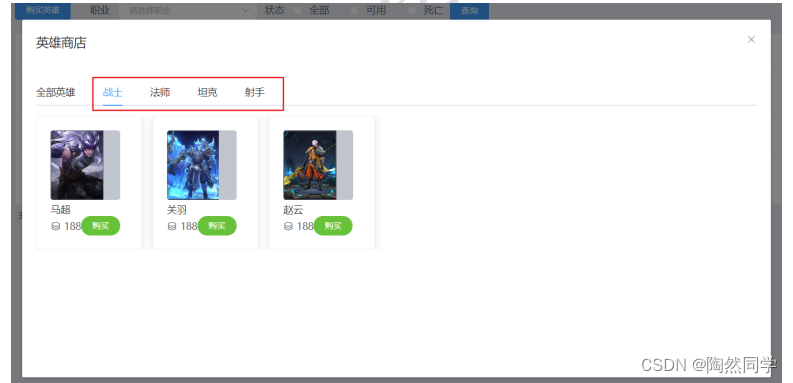 - 点击购买英雄要求: