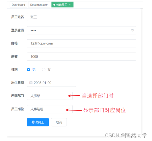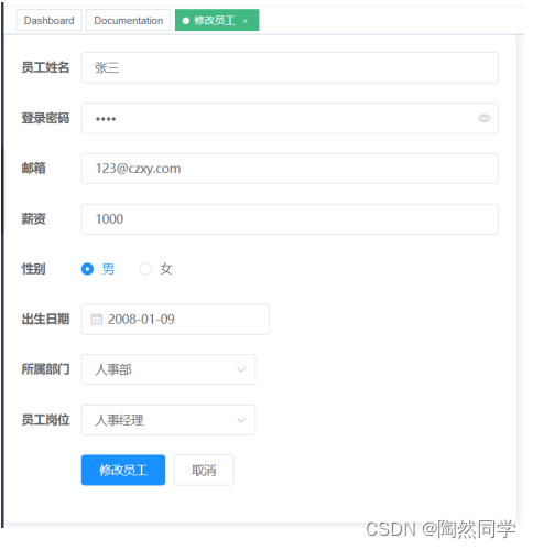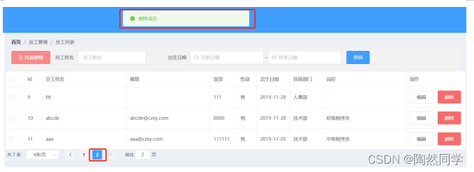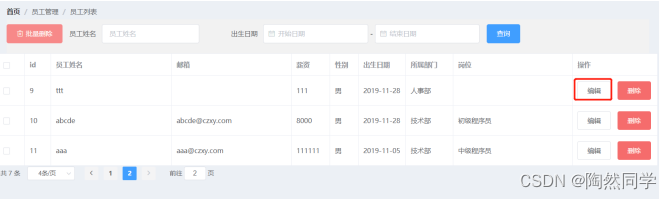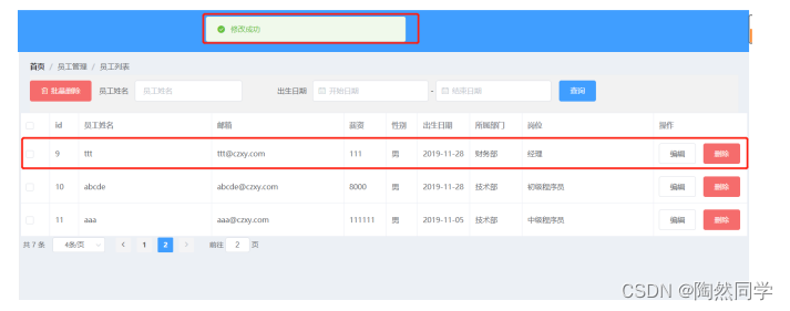 - 点击确定,完成对员工的修改,并跳转到列表页面