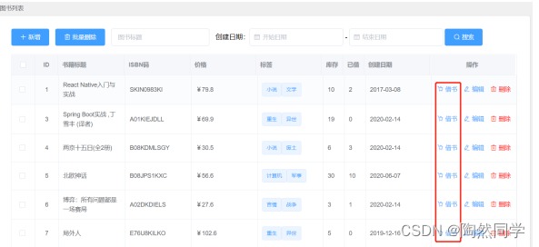 - 在【图书管理】界面点击想要借阅的图书右侧的【借阅】按钮,进入【借阅图书】界面