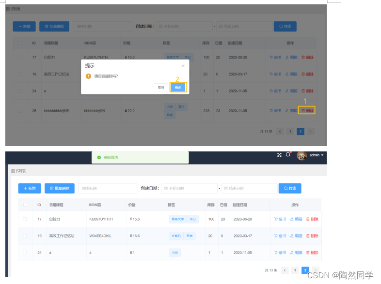 - 点击确定按钮,删除成功后返回刷新列表![]()