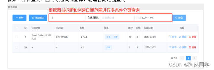 多条件分页查询:图书标题模糊查询、创建日期范围查询