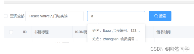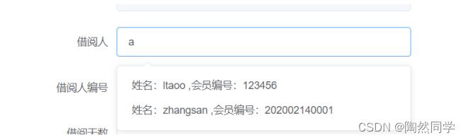 1. 输入【借阅人姓名】,查询数据库相关用户,给出输入建议
