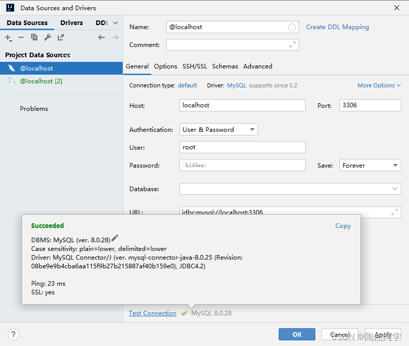 6.点击Test Connection 测试一下连接 如果是绿色的Success就是成功了