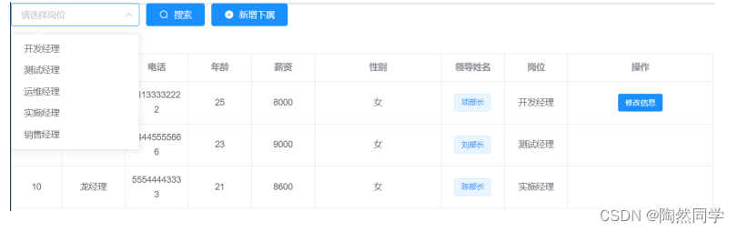 查询条件下拉框形式,其中只能有当前用户同等级别的岗位数据,比如说当前登陆用户项经理,级别为2,下拉框中就只有能级别为2的岗位数据
