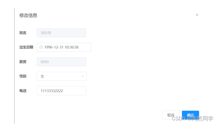 5.1点击修改信息按钮,出现弹框,表单项正确(2分)