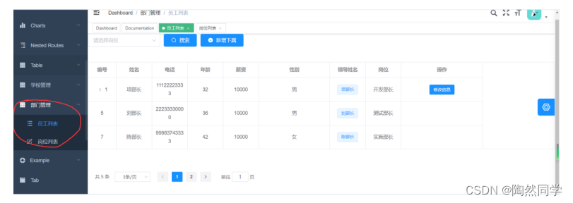3.1菜单管理,添加部门管理,下面两个子菜单(员工列表,岗位列表)2分