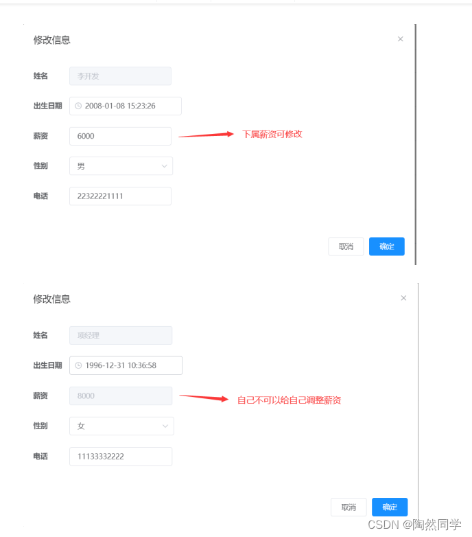 5.6 下属薪资可修改,自己薪资不可修改(4分)