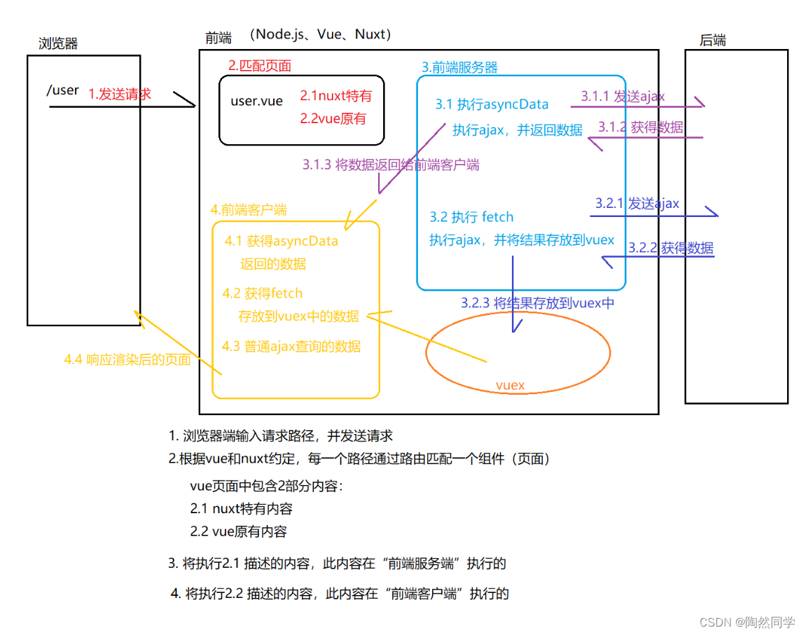 asyncData中的ajax将在“前端服务端执行”,在浏览器看到是数据,而不是ajax程序。