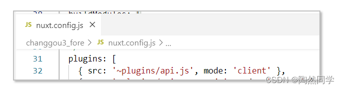 { <span style="color:#000000">src</span>: <span style="color:#aa1111">'~/plugins/apiclient.js'</span>, <span style="color:#000000">mode</span>: <span style="color:#aa1111">'client'</span> }, <span style="color:#aa5500">//前端客户端</span>
