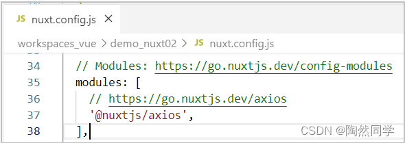 步骤3:nuxt.config.js 以模块的方式添加axios