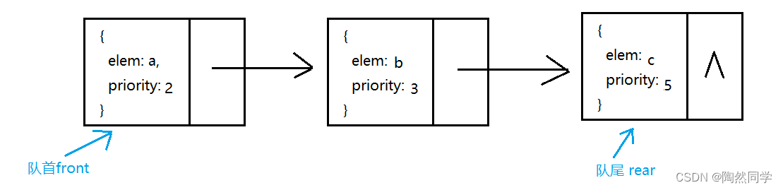 -  优先级队列也可以使用两种存取方式,但常用链式存储。 -  默认队列 ![]()
