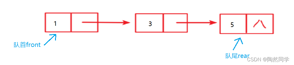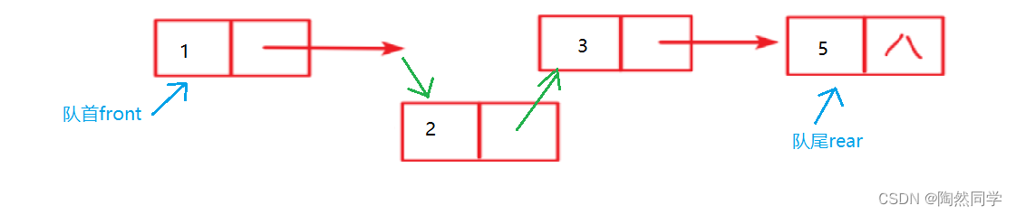 private Node front;     //队首(出队/删除)