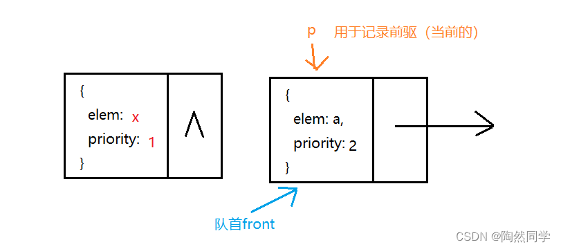 -  数据之间关系 node.next //指针域 node.data //数据域,存放的数据类型是 PriorityData