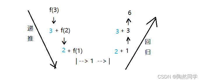 -  程序调用自身的编程技巧称为递归( recursion),由两部分组成:递推、回归。 -  递推:方法依次调用,没有返回。