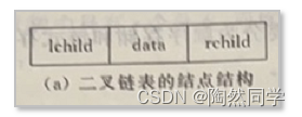 二叉链表存储结构有3个域:数据域data、左孩子域lchild、右孩子域rchild