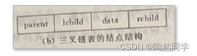 三叉链表存储结构有4个域:数据域data、左孩子域lchild、右孩子域rchild、父节点域parent