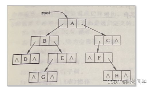 二叉树的链式存储:将二叉树的各个结点随机的存放在位置任意的内存空间中,各个结点之间的逻辑关系通过指针来反映。