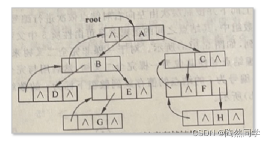 public class BiTreeNode { public Object data; //数据域 public BiTreeNode lchild, rchild; //左、右孩子域 } -