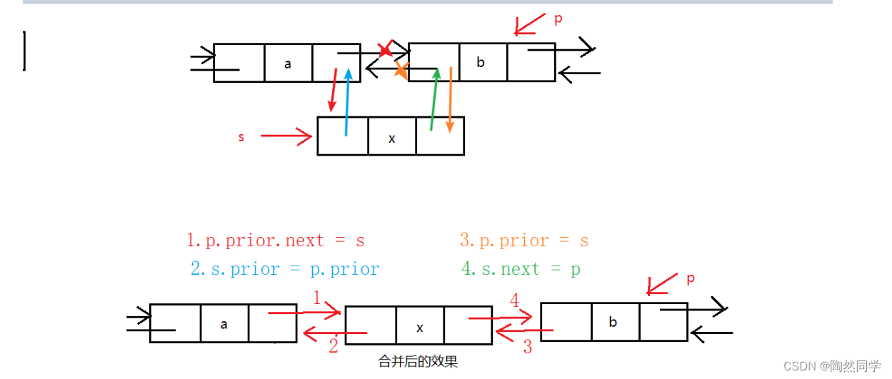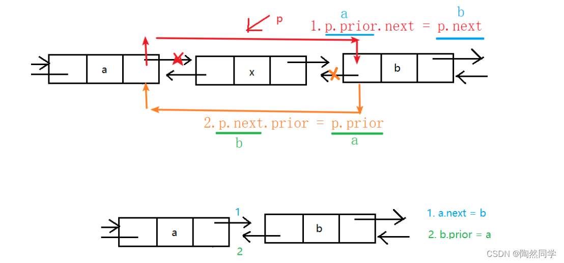 // a.next = b p.prior.next = p.next; // b.prior = a p.next.prior = p.prior