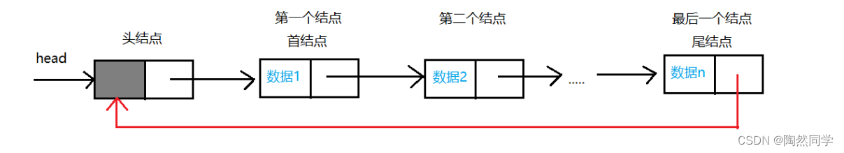 循环链表也称为环形链表,其结构与单链表相似,只是将单链表的首尾相连。