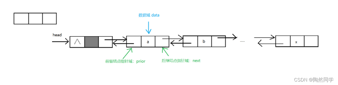 一个结点由两个指针域,一个指针域指向前驱结点,另一个指针域指向后继结点,这种链表称为双向链表