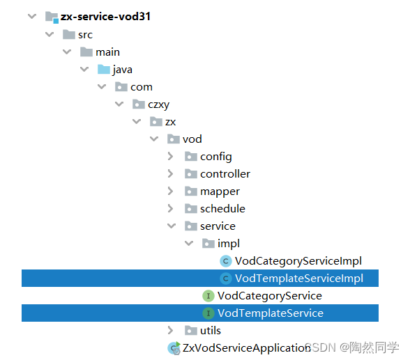 package com.czxy.zx.vod.service; import com.baomidou.mybatisplus.extension.service.IService; import com.czxy.zx.vod.utils.VodCategory; /** * @author 桐叔 * @email liangtong@itcast.cn */ public interface VodCategoryService extends IService<VodCategory> { } package com.czxy.zx.vod.service.impl; import com.baomidou.mybatisplus.extension.service.impl.ServiceImpl; import com.czxy.zx.vod.mapper.VodCategoryMapper; import com.czxy.zx.vod.service.VodCategoryService; import com.czxy.zx.vod.utils.VodCategory; import org.springframework.stereotype.Service; import org.springframework.transaction.annotation.Transactional; /** * @author 桐叔 * @email liangtong@itcast.cn */ @Service @Transactional public class VodCategoryServiceImpl extends ServiceImpl<VodCategoryMapper, VodCategory> implements VodCategoryService { } -
