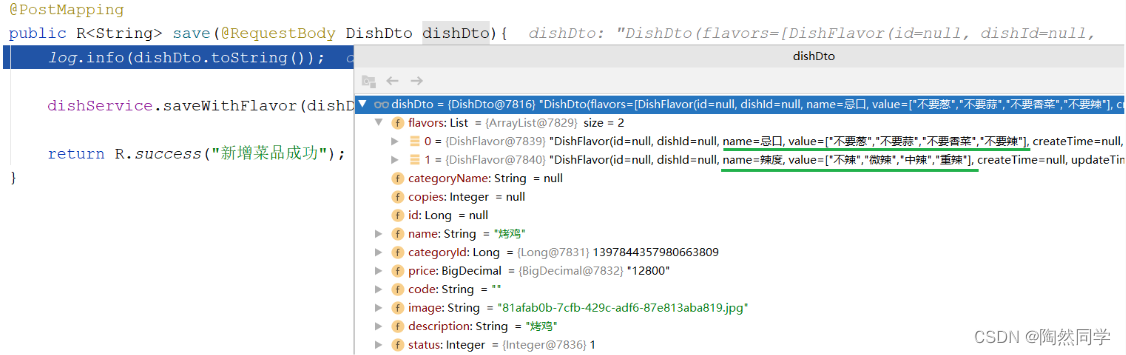 <span style="color:#000000">log</span>.<span style="color:#000000">info</span>(<span style="color:#000000">dishDto</span>.<span style="color:#000000">toString</span>());