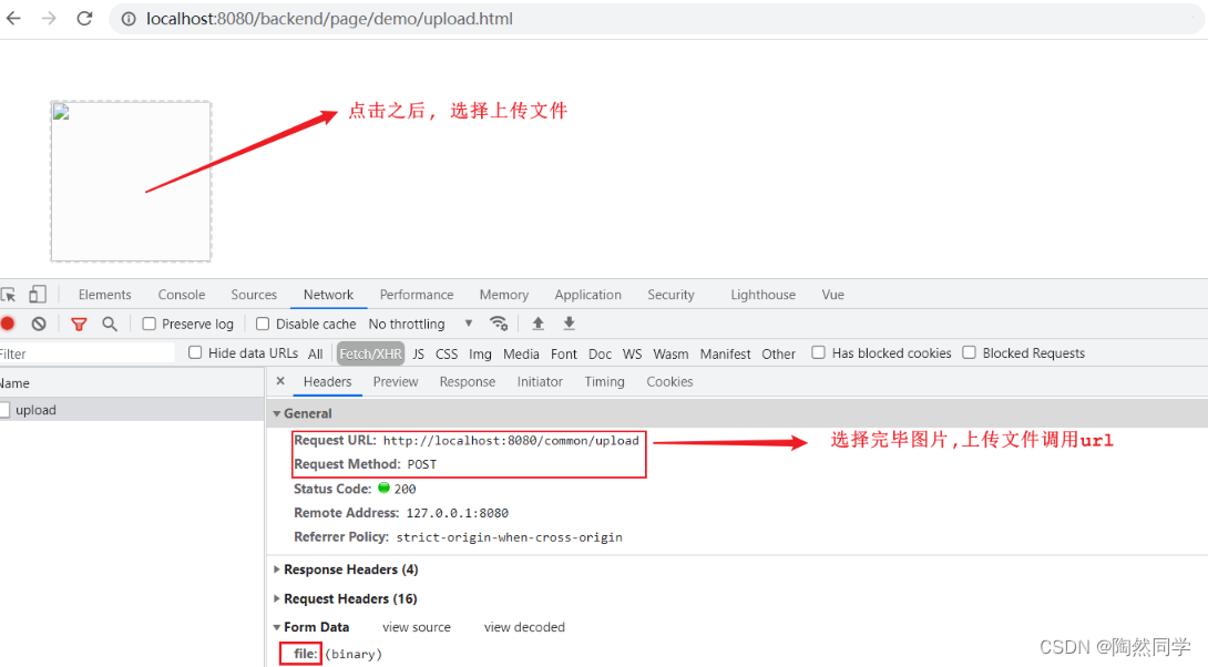 虽然上述是ElementUI封装的代码,但是实际上最终还通过file域上传文件,如果未指定上传文件的参数名,默认为file。