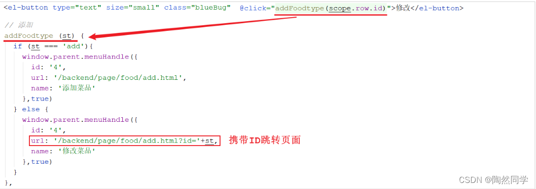 1). 点击菜品列表的中的修改按钮,携带菜品id跳转至add.html