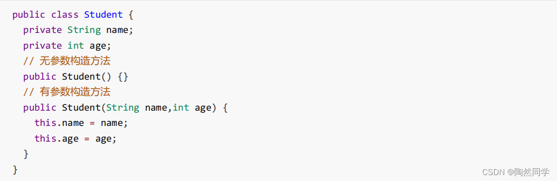 构造方法的写法上,方法名与它所在的类名相同。它没有返回值,所以不需要返回值类型,甚至不