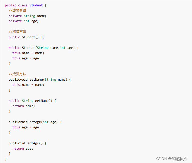 编写符合 JavaBean 规范的类,以学生类为例,标准代码如下:
