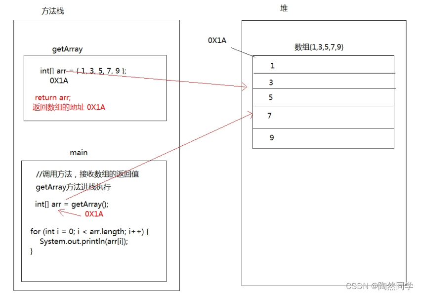 数组作为方法参数传递,传递的参数是数组内存的地址。