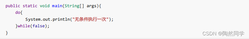 循环的特点:无条件执行一次循环体,即使我们将循环条件直接写成