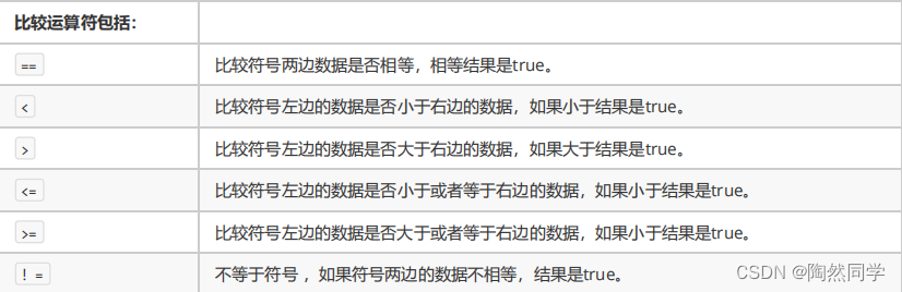 比较运算符,是两个数据之间进行比较的运算,运算结果都是布尔值 true 或者 false 。