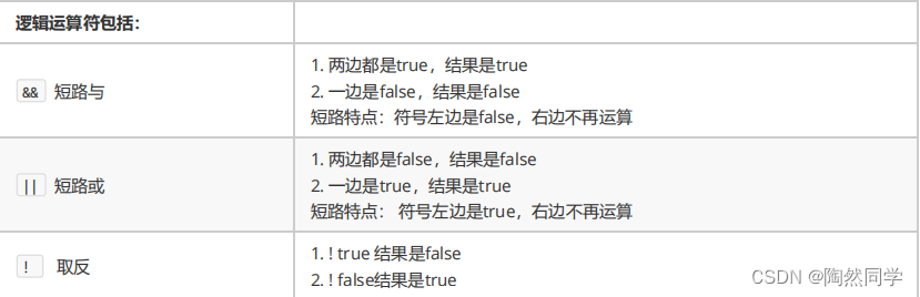 逻辑运算符,是用来连接两个布尔类型结果的运算符,运算结果都是布尔值 true 或者 false