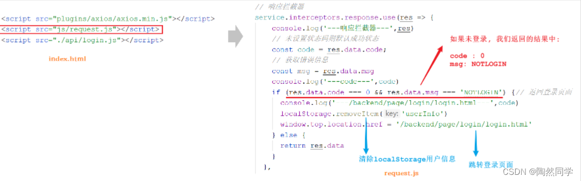 如果未登录,我们需要给前端返回什么样的结果呢? 这个时候, 我们可以去看看前端是如何处理的 ?