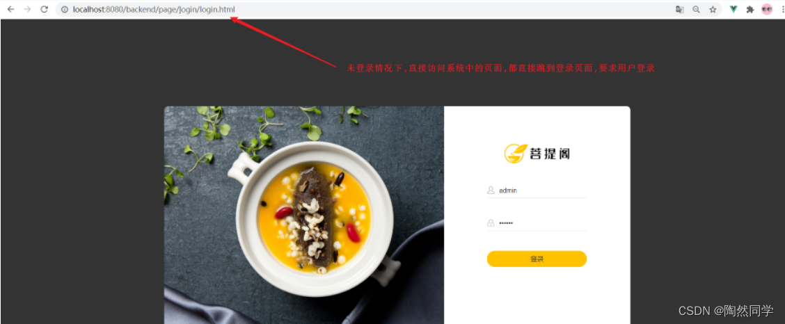 上述这种设计并不合理,我们希望看到的效果应该 是,只有登录成功后才可以访问系统中的页面,如果没有登录, 访问系统中的任何界面都直接跳转到登录页面。