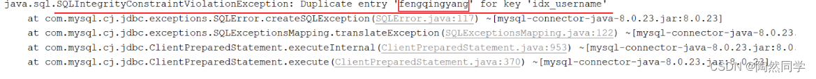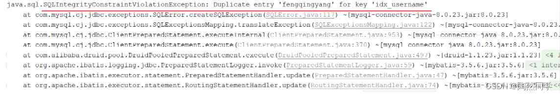 指定捕获的异常类型为 SQLIntegrityConstraintViolationException